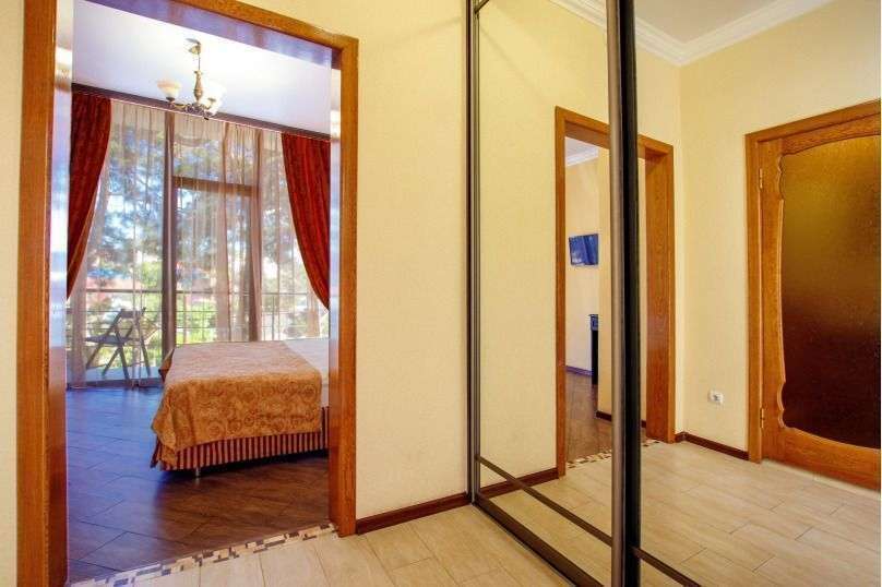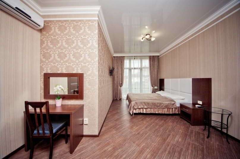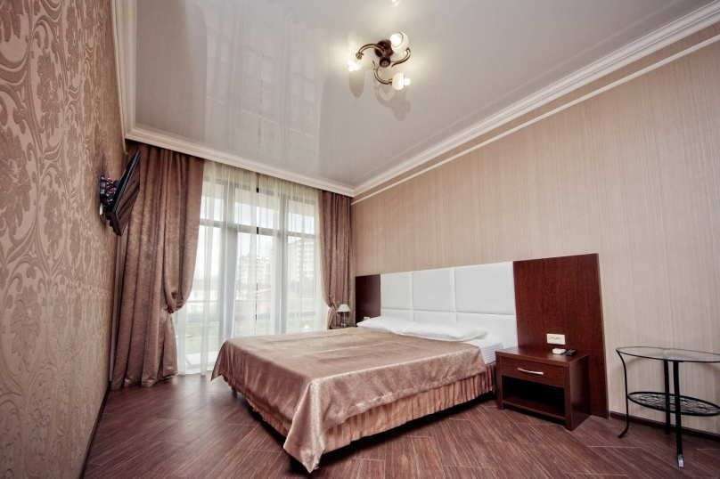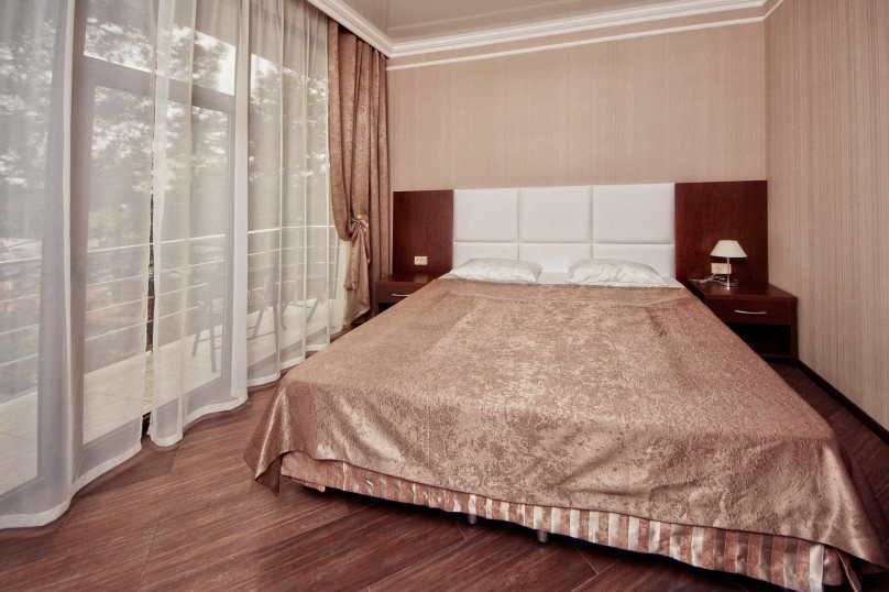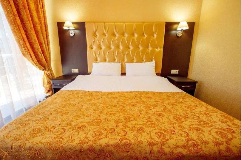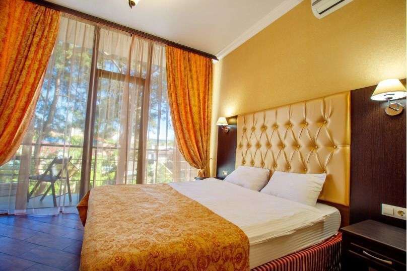 Двухместный номер общей площадью 20 кв. м. отвечает всем современным требованиям комфорта и отдыха, оборудован индивидуальной системой климат контроля, кроватью размера «King Size» с ортопедическим матрасом и мягким изголовьем с возможностью разделения на две кровати, рабочим местом, выходом в интернет, телефоном, принадлежностями для приготовления кофе и чая, холодильником, питьевой водой, телевизором с плоским экраном и спутниковым TV, звуконепроницаемыми окнами. В вашем распоряжении ванная комната с душевой кабиной, феном и косметическим принадлежностями. Балкон с видом на горы, оборудованный мебелью придаст вашему отпуску невероятный комфорт и наслаждение каждой минутой. К услугам гостей ежедневная уборка номеров, прачечная, заказ экскурсий, румсервис.